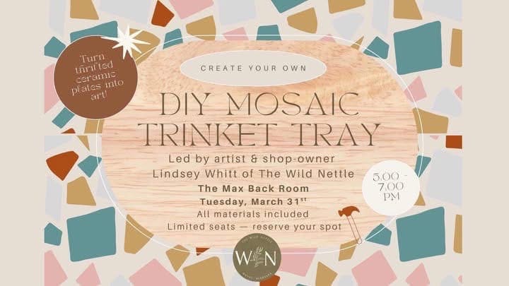 Tuesday, March 31 @ 5:00-7:00pm at the Max (Back Room) Led by artist & shop owner, Lindsey Whitt, of the Wild Nettle - all materials included!Images