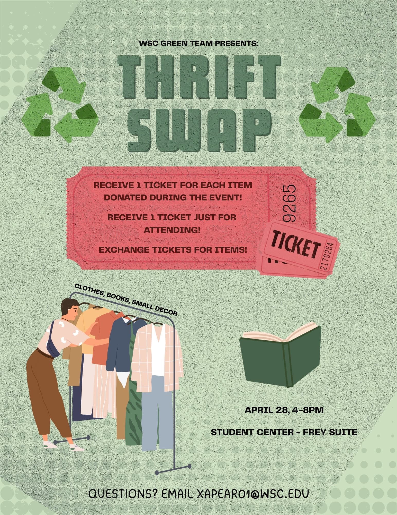 An oppurtunity to donate old clothing, books, and small decor and pick out new-to-you items to give them new life!