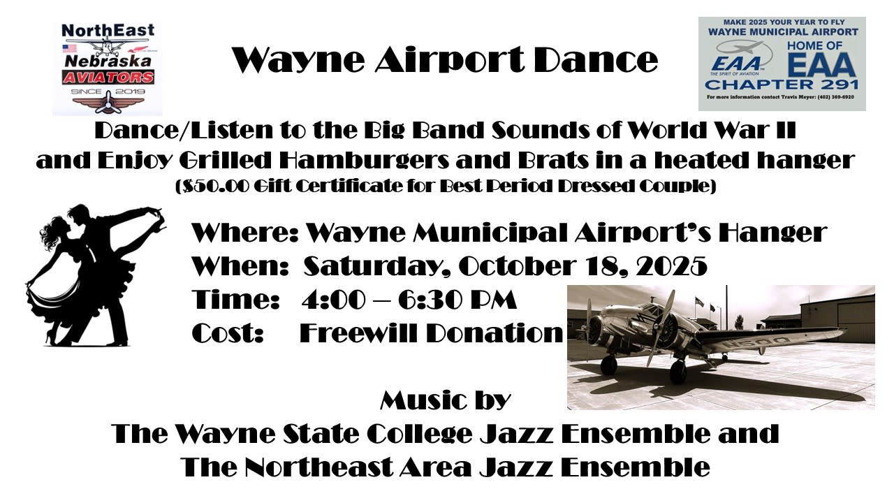 Music by 2 outstanding 18-member Big Bands: The Wayne State College Jazz Ensemble and The Northeast Area Jazz Ensemble.
